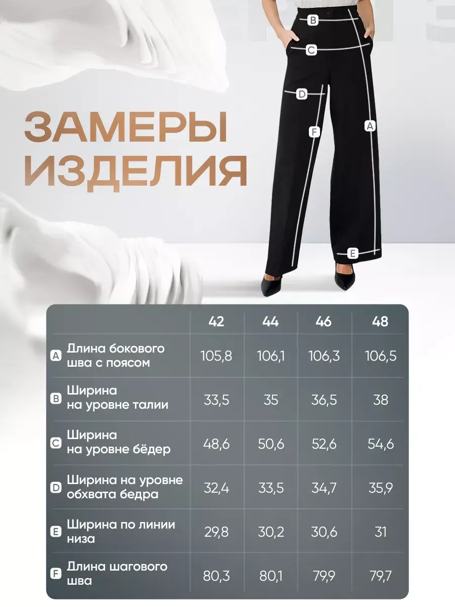 Обрати внимание, в основе новинки - не трикотаж! Это красивая костюмная ткань с добавлением шелковистой вискозы. Изделия с таким составом мягкие и одновременно плотные, с приятной гладкой фактурой. Главный формообразующий компонент материала - эластан для максимальной защиты от деформаций. Это значит никаких вытянувшихся участков на коленях и бедрах.