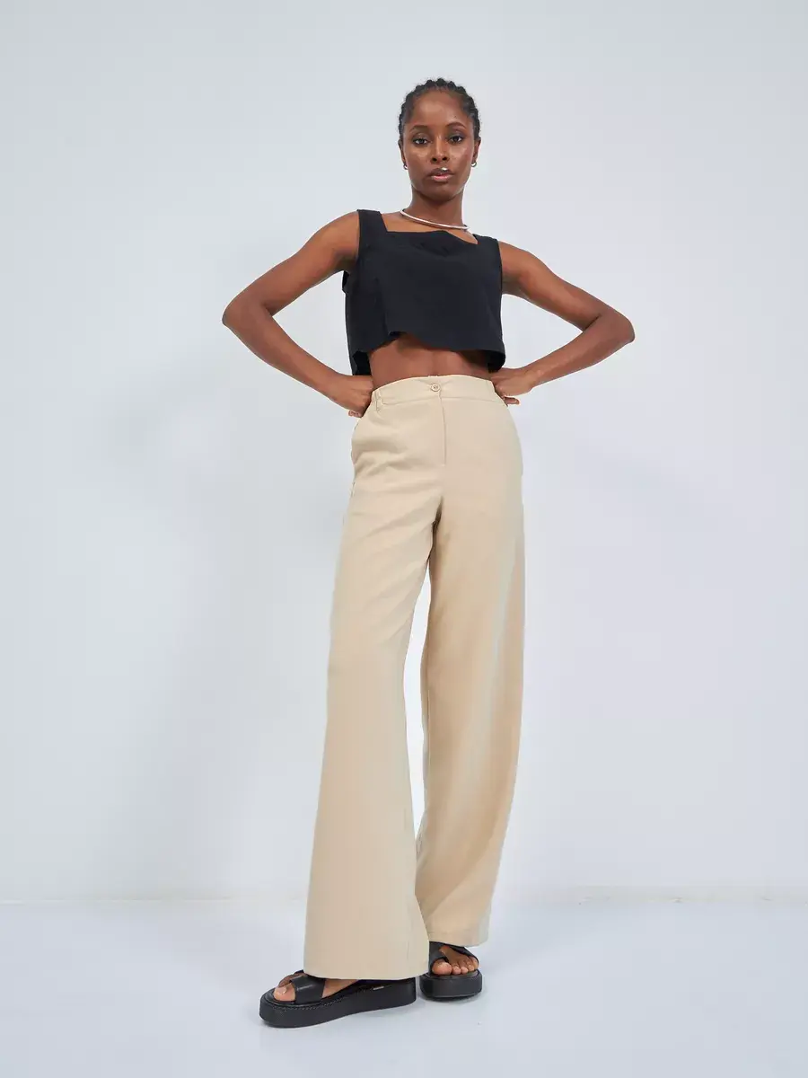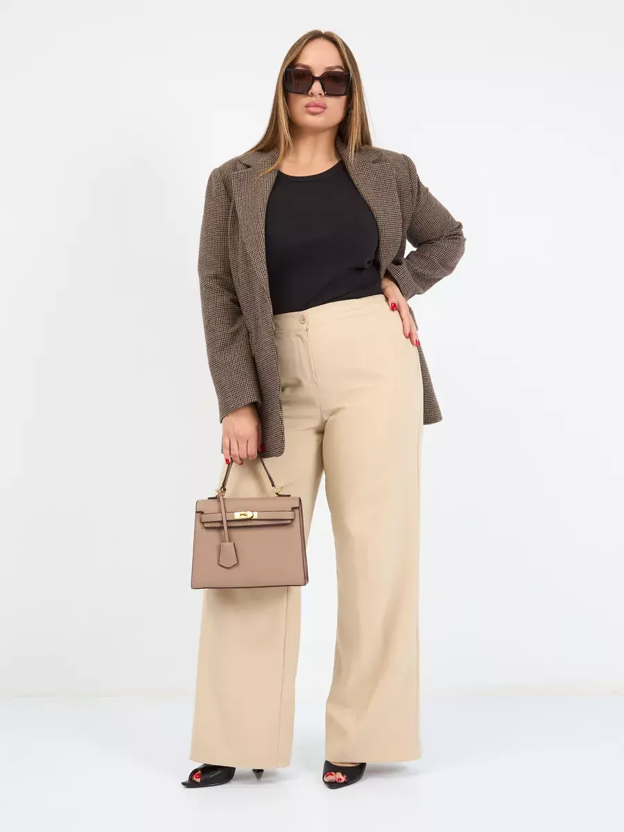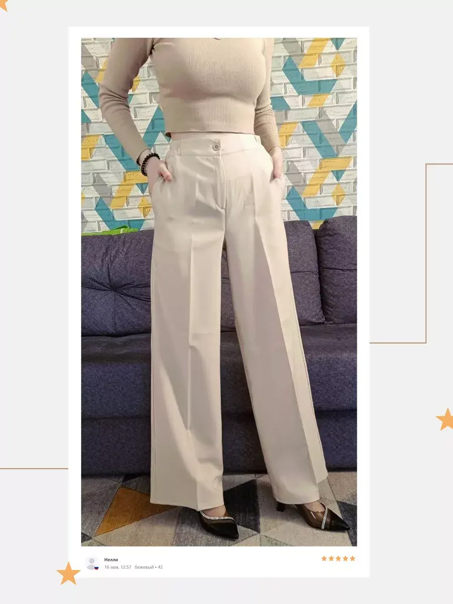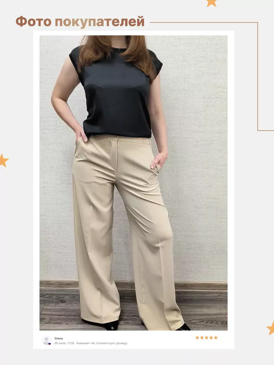 Бежевые штаны женские - идеальный выбор для летнего сезона. Эти стильные и универсальные брюки палаццо впишутся в любой гардероб. Их классический крой и широкие штанины создают элегантный образ, подходящий как для повседневных дел, так и для праздников. Бежевый цвет добавляет легкости и свежести, идеально сочетаясь с летним настроением. Вы будете чувствовать себя комфортно и стильно в этих штанах в любую погоду. Попробуйте эти летние женские брюки палаццо и оцените их удобство и красоту!