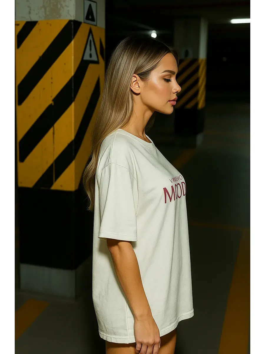 Лаконичная надпись, чистый белый цвет и свободный оверсайз крой — формула актуального образа для уверенных девушек.
