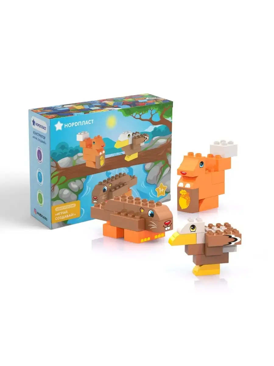 Серия конструктора Играй, Создавай, Изучай разработана специально для малышей от 1 года. Все конструкторы этой серии изготовлены из безопасного и прочного пластика ярких цветов, не тускнеющих со временем. Крнструктор способствуют развитию практических навыков конструирования и творчества, тем самым постепенно развивая воображение. Конструктор подходит для одиночной и коллективной игры. С консруктором Лесные животные изуить мир лесных животных вашему малышу поможет гордый орёл, парящий в облаках, хитрая быстрая белка, спрятавшаяся в кроне деревьев, и мудрый бобер, который уже построил свою платину и ждёт вас в гости. Играйте с пользой и познавайте это таинственный и увлекательный мир. Кубики хранятся в удобной коробке. Конструктор для мальчика для девочки подарки на день рождения для детей пластиковый конструктор игрушки для мальчиков для девочек полесье для взрослых для малышей развивающие детский конструктор.