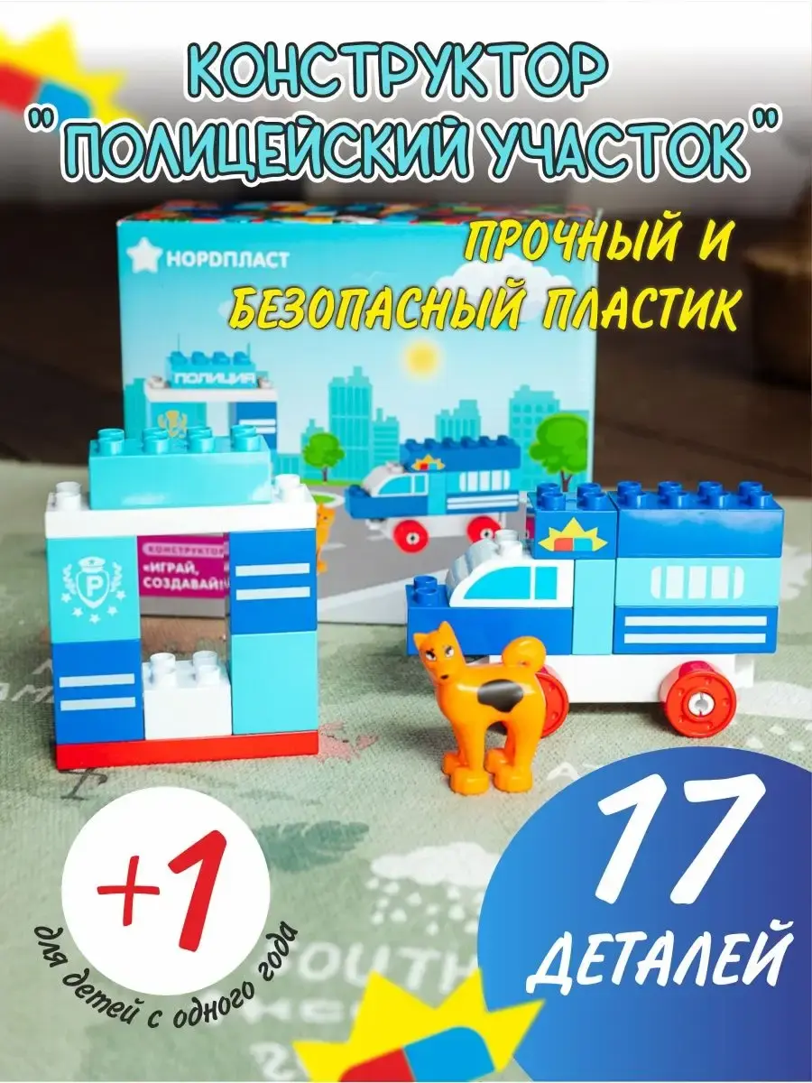 Детский развивающий конструктор Поезд для мальчиков и девочек из серии Играй, Создавай, Изучай подарит детям много ярких впечатлений и эмоций. Современный комплект состоит из 43 деталей - кубиков с цифрами и знаками и основы - вагончиков на колесиках. Блоки для моделирования в ярких цветах не тускнеют со временем и выполнены из качественного материала - прочного безопасного пластика. Крупные пластмассовые детали игрушки совместимы с лего дупло. Прикольная развивашка способствует развитию мелкой моторики, творческого и пространственного мышления, воображения, логики, цветовосприятия, внимания, позволяет в игровом формате изучать цифры, счет, простые математические действия, азы арифметики. Оригинальный конструктор позволит ребенку почувствовать себя строителем, своими руками создать необычный сборный поезд и подойдет для веселого совместного времяпровождения детей и взрослых. Набор, аналог Lego Duplo, без мелких элементов идеально подойдет для малышей в возрасте от 1 годика до 5 лет. В ассортименте представлено 5 вариантов забавного конструктора: "Поезд" - 43 детали; "Пиратский корабль" - 14 деталей; "Маяк и исследовательское судно" - 35 деталей; "Домики" - 57 деталей.; "Полицейский участок" - 17 деталей. С ним можно играть дома, взять в детский садик или с собой на дачу. Фигурки для создания паровоза можно комбинировать по-разному, чтобы учиться складывать и вычитать цифры, а также создавать различные цветные комбинации игрушки. Интеллектуальный объемный конструктор подойдет для одиночного развлечения или веселой детской компании. При необходимости детали легко чистить от загрязнений - достаточно просто их помыть водой или обработать антисептическими средствами. Большой конструктор имеет российское производство и изготавливается в Санкт-Петербурге из первичного сырья. Пластик не имеет неприятного запаха. Новогодний, подарочный, интересный набор конструктора для творчества - это лучший вариант подарка ребенку на любой праздник.