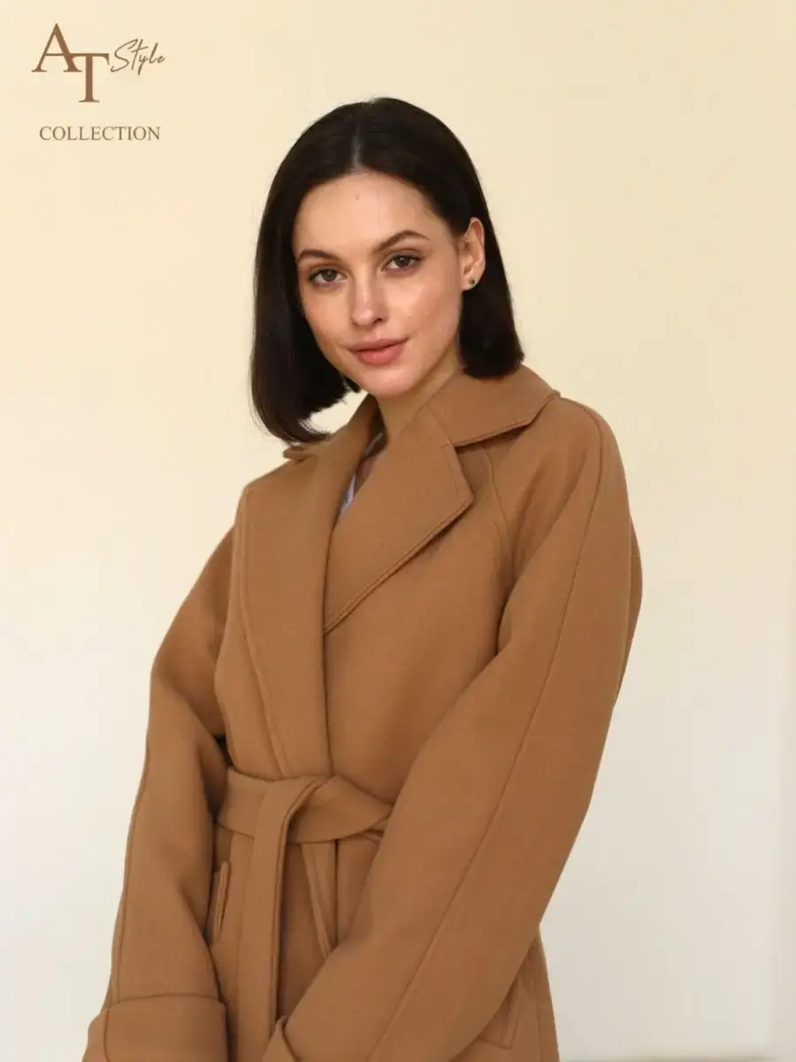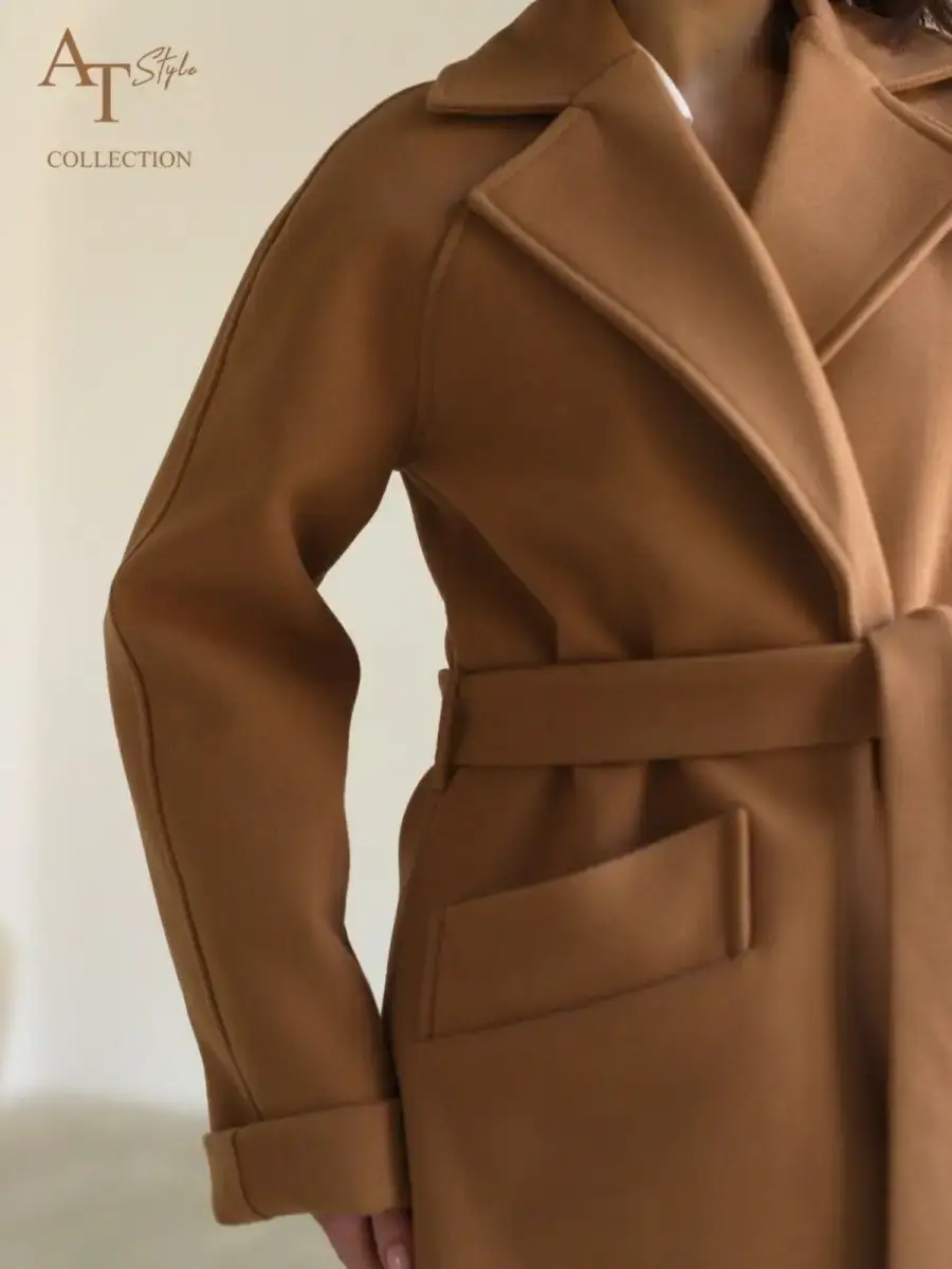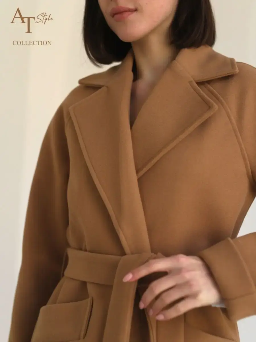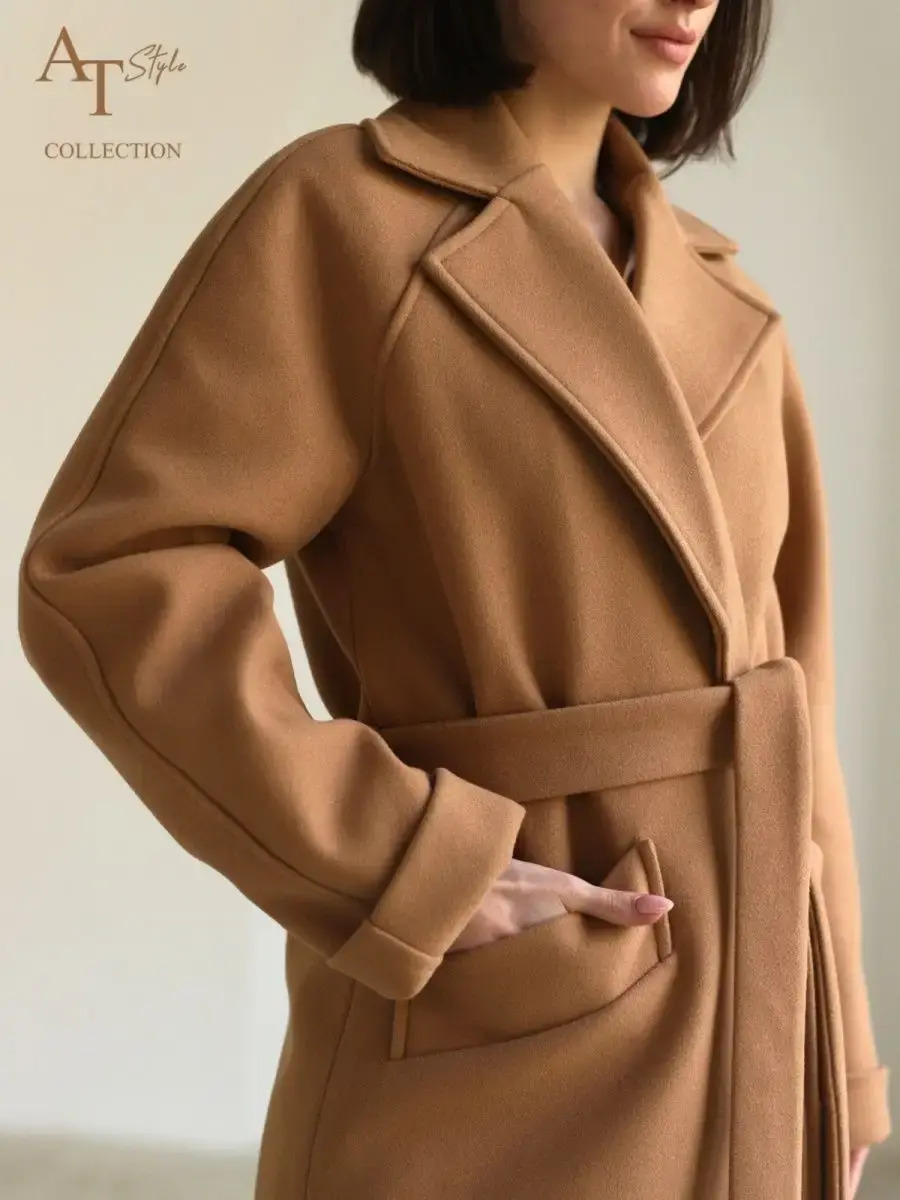 Пальто с запахом без пуговиц на поясе