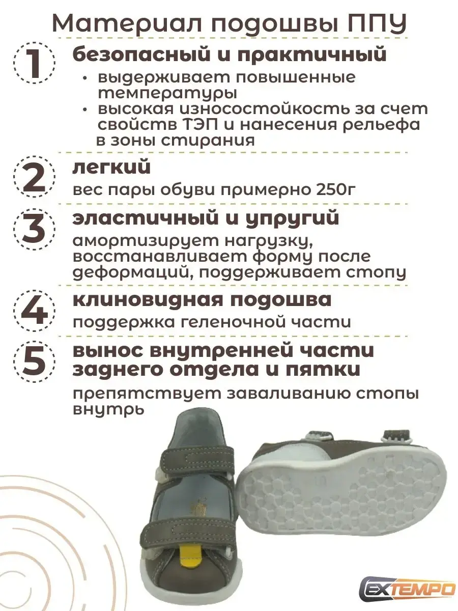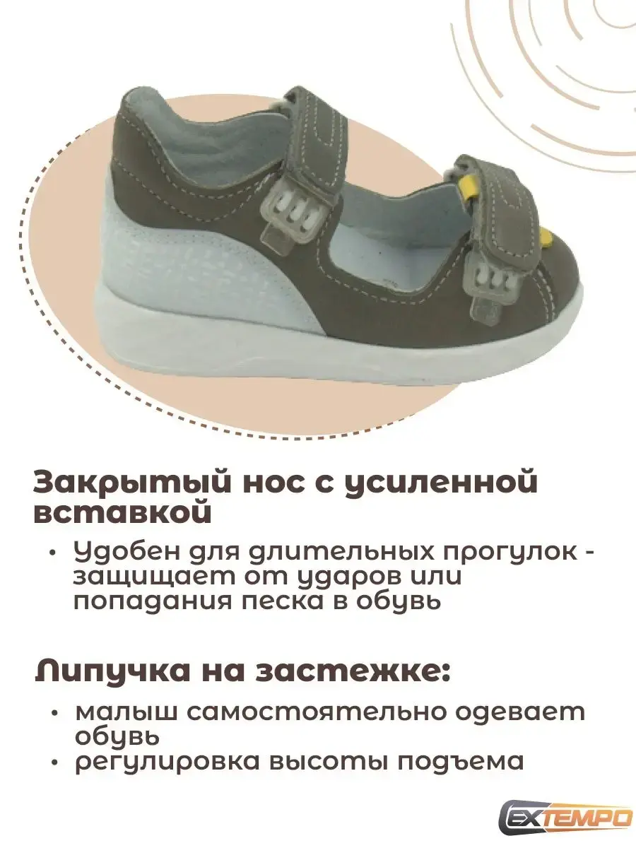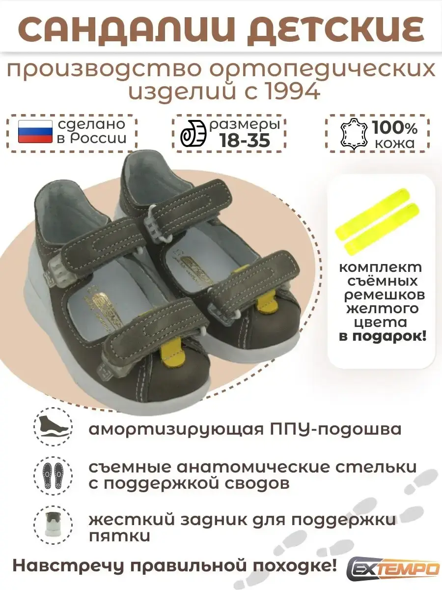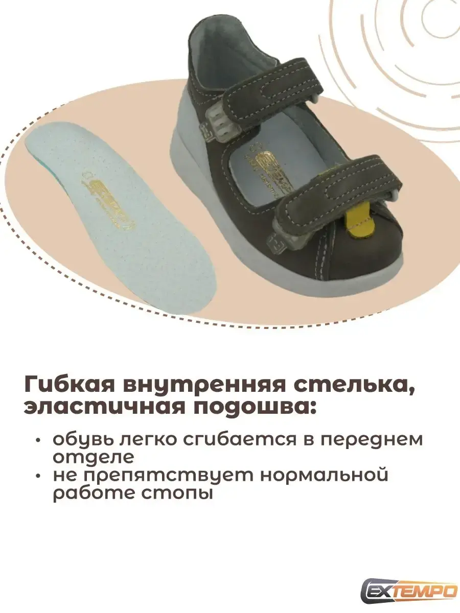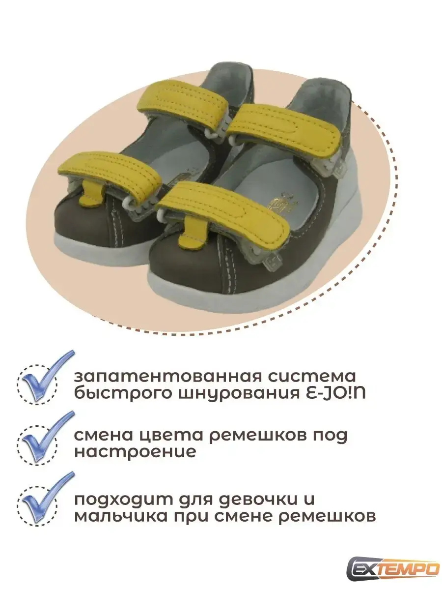 Детские сандалии для девочек и для мальчиков отличный вариант обуви для ежедневной носки. Материал сандалий для подростков выполнен из натуральной кожи. Сандали с жестким задником, надежно фиксируют пятку малыша. Съемные анатомические стельки на лето подарят комфорт маленьким детским ножкам. Тонкий упругий материал в переднем отделе не позволяет стельке сминаться, занимает минимальное место в обуви, не препятствует сгибанию стопы (в пределах нормативов), облегчает движение в фазе отталкивания за счет упругости. Босоножки детские для детей летние для прогулки, детского сада. В подарок к сандаликам идет комплект сменных ремешков быстрого шнурования. Со сменными ремешками Extempo E-Jo!n наша обувь подойдет и для девочек и для мальчиков. Либо можно менять ремешки под настроение или определенный наряд.