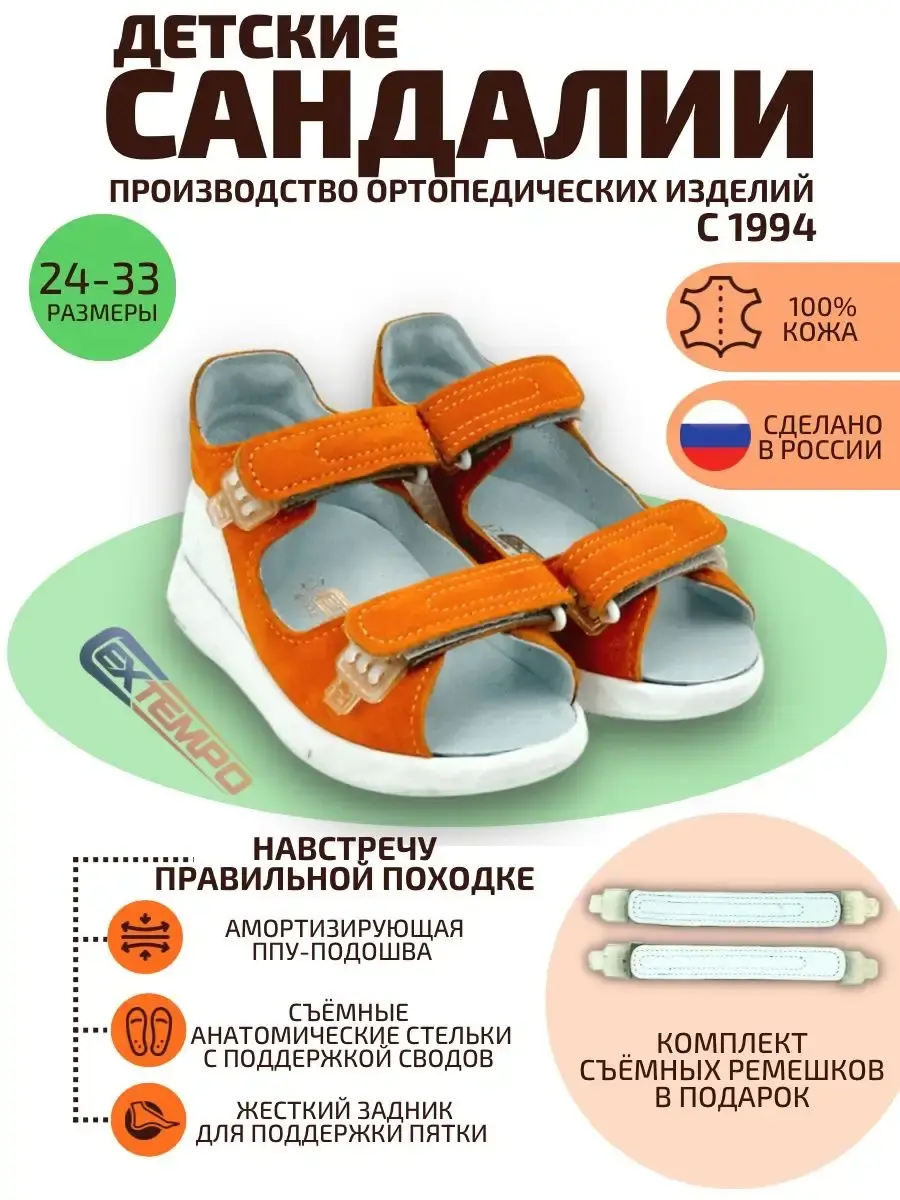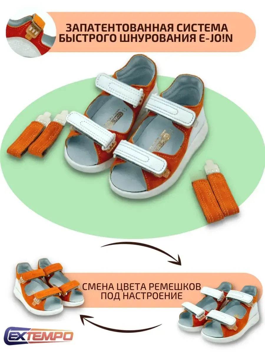 Детские сандалии для девочек и для мальчиков отличный вариант обуви для ежедневной носки. Материал сандалий для подростков выполнен из натуральной кожи. Сандали с жестким задником, надежно фиксируют пятку малыша. Съемные анатомические стельки на лето подарят комфорт маленьким детским ножкам. Тонкий упругий материал в переднем отделе не позволяет стельке сминаться, занимает минимальное место в обуви, не препятствует сгибанию стопы (в пределах нормативов), облегчает движение в фазе отталкивания за счет упругости. Босоножки детские для детей летние для прогулки, детского сада. В подарок к сандаликам идет комплект сменных ремешков быстрого шнурования. Со сменными ремешками Extempo E-Jo!n наша обувь подойдет и для девочек и для мальчиков. Либо можно менять ремешки под настроение или определенный наряд.