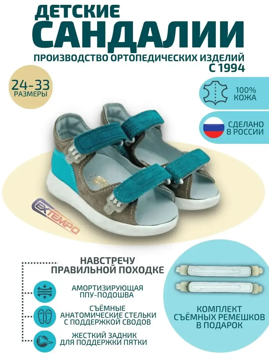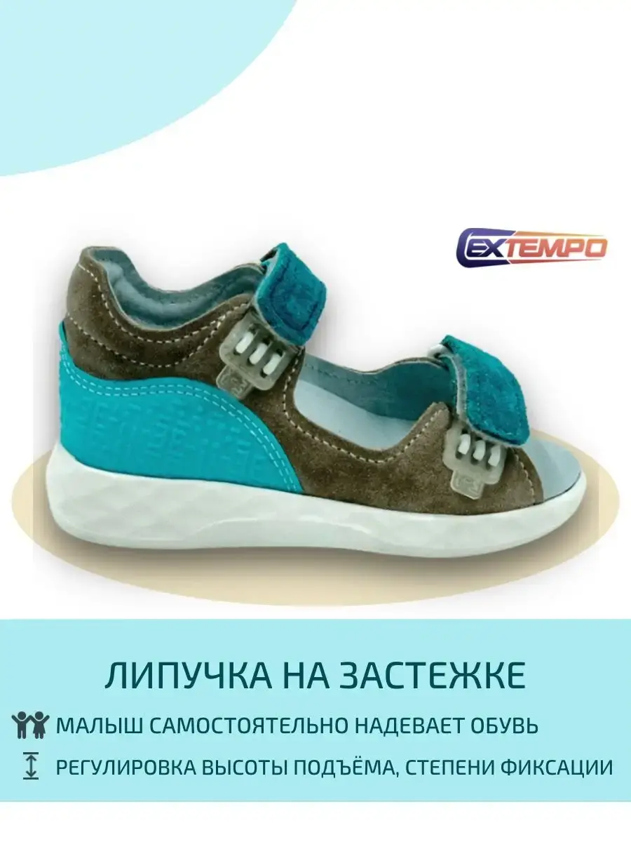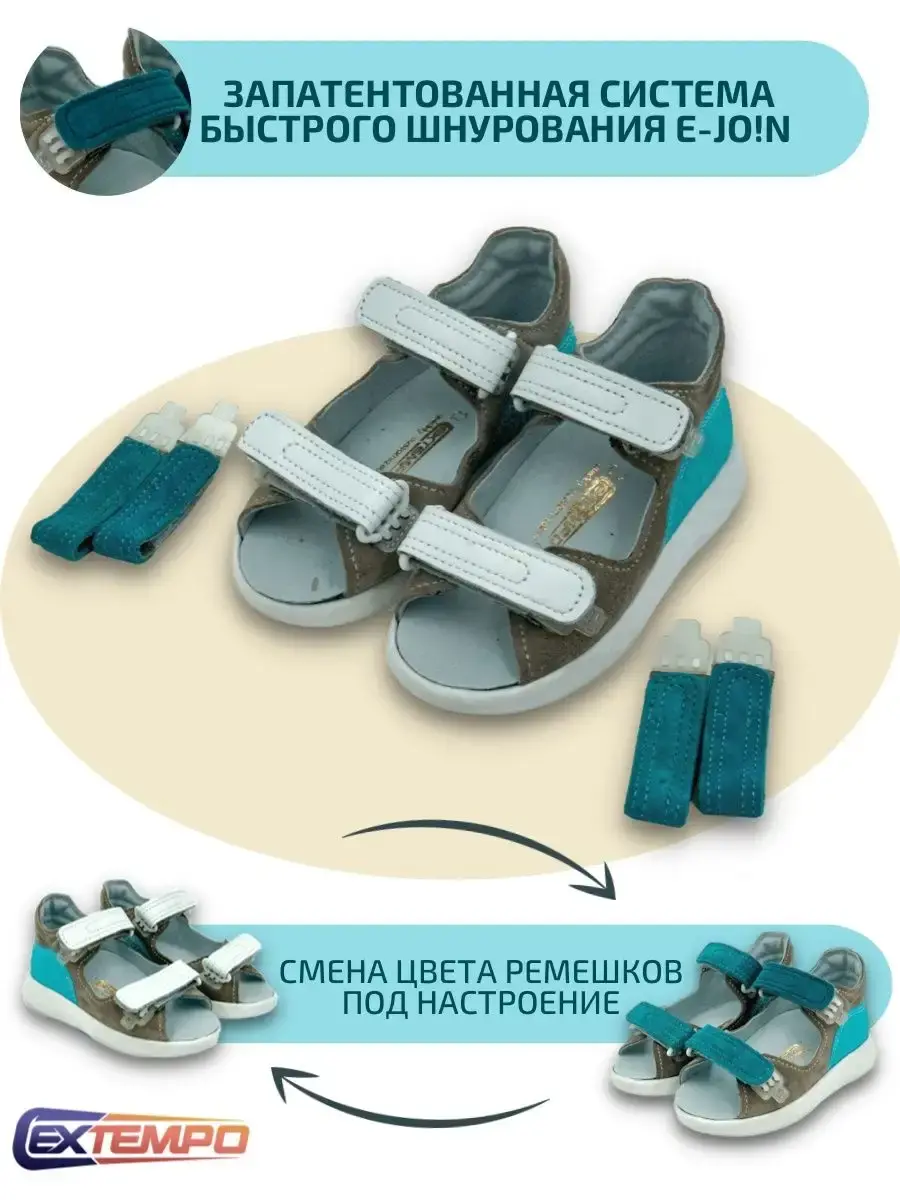 Детские сандалии для девочек и для мальчиков отличный вариант обуви для ежедневной носки. Материал сандалий для подростков выполнен из натуральной кожи. Сандали с жестким задником, надежно фиксируют пятку малыша. Съемные анатомические стельки на лето подарят комфорт маленьким детским ножкам. Тонкий упругий материал в переднем отделе не позволяет стельке сминаться, занимает минимальное место в обуви, не препятствует сгибанию стопы (в пределах нормативов), облегчает движение в фазе отталкивания за счет упругости. Босоножки детские для детей летние для прогулки, детского сада. В подарок к сандаликам идет комплект сменных ремешков быстрого шнурования. Со сменными ремешками Extempo E-Jo!n наша обувь подойдет и для девочек и для мальчиков. Либо можно менять ремешки под настроение или определенный наряд.
